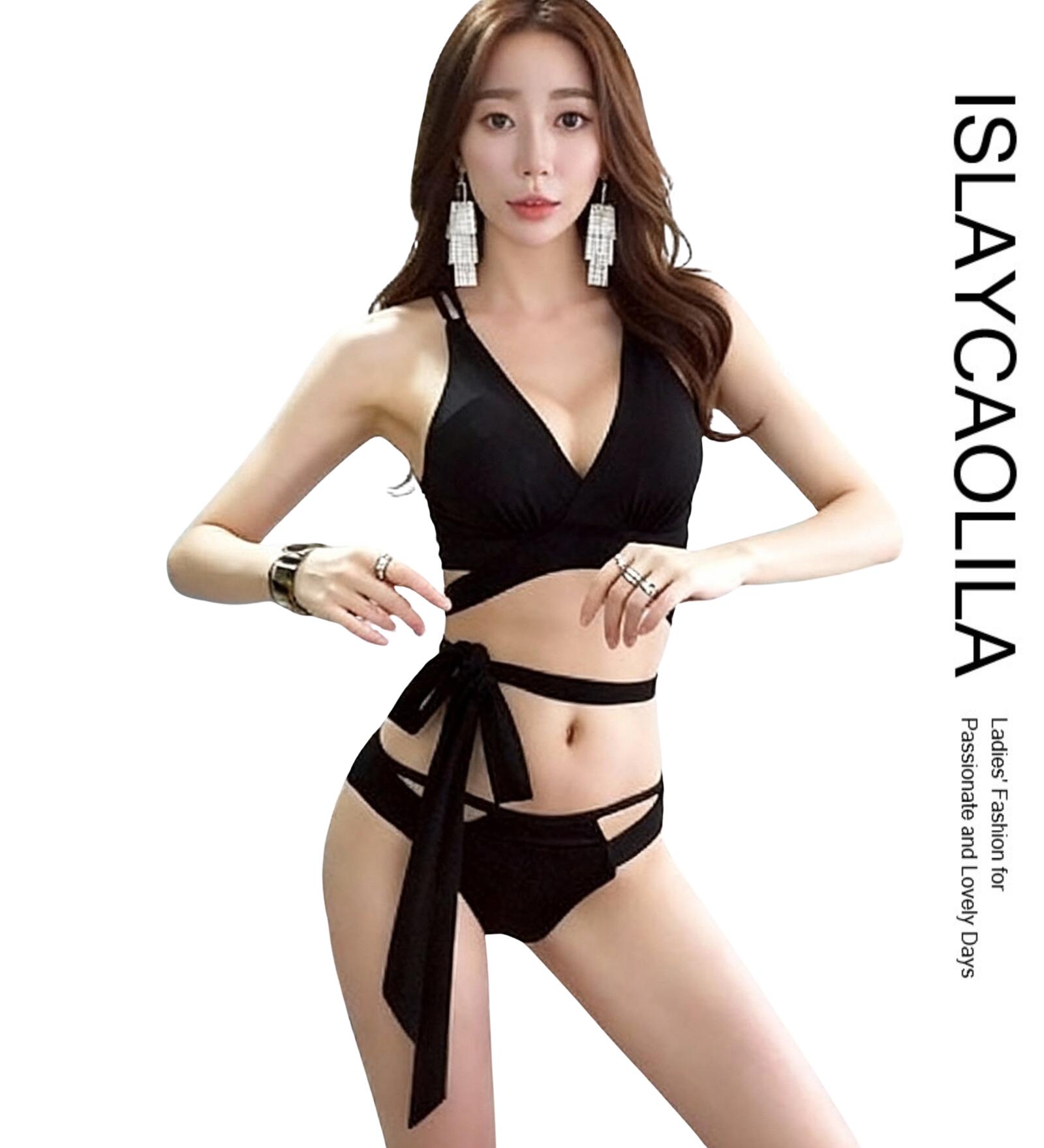 ビキニ 水着 ウエスト リボン スイムドレス 三角 バッククロス ボトムスカット セパレート パッド入り ワイヤーなし レディース CE1 イシス