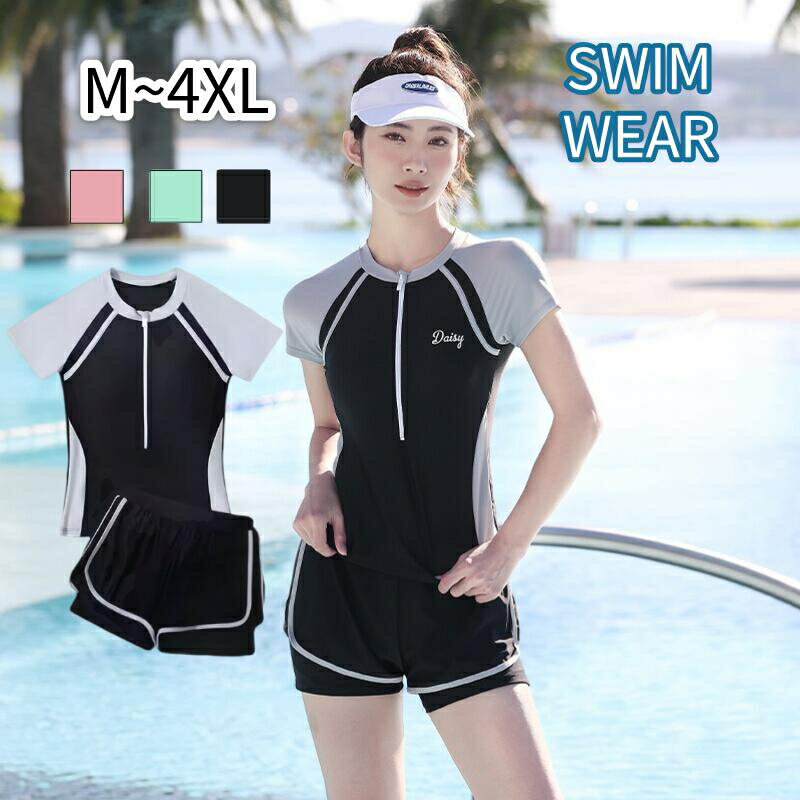 水着 レディース 体型カバー 中学生 高校生 スポーティー 可愛い スイムウェア 3点セット 夏 海 水泳服 10代 20代 30代
