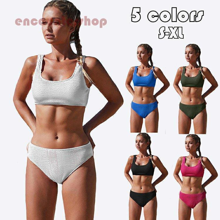 水着セット レディース 無地 純色 ビキニ 2点セット タンクトップ ビキニセット ギャル 大きい 大人用 女性用 おしゃれ 小胸もピッタリ 水着 5色