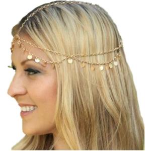 XPデザイン チェーン ティアラ ボディチェーン シャイニング ヘア ジュエリー ヘアバンド 髪飾り ターコイズ(ターコイズ ゴールド)