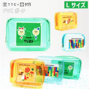 サクラクレパス カラフル ビニールポーチ L クリア スクエアポーチ クレパス クーピー クレヨン かわいい トラベル コスメ 旅行 マチ付き 角型
