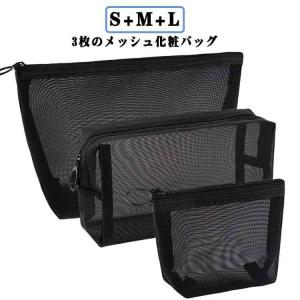 薄型 旅行 メッシュポーチ 中 黒 収納ポーチ ポーチ コンパクト 大 メッシュ 収納 化粧ポーチ トラベルポーチ メイクポーチ コスメ収納 3