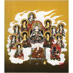 現代仏壇用硯屏(工芸色紙) 「十三佛」 額縁寸法24X27cm