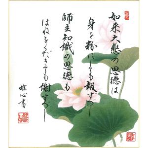現代仏壇用硯屏(工芸色紙) 「恩徳讃(紅雲 邪心 作画)」 額縁寸法24X27cm