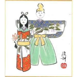 寸松庵色紙(上巳の節句)林 伍朗作画「立雛」 寸松庵寸法13.6X12.1cm