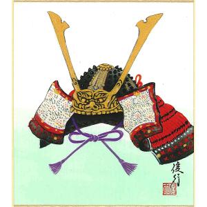 寸松庵色紙(端午の節句)菊池 俊行作画「兜」 寸松庵寸法13.6X12.1cm