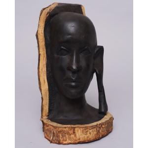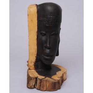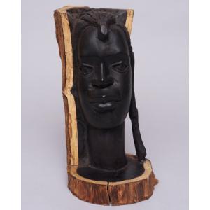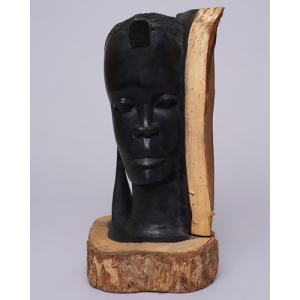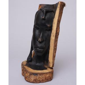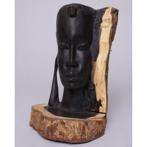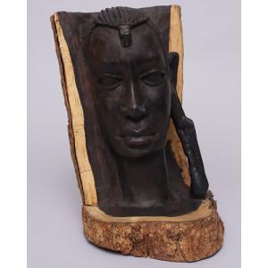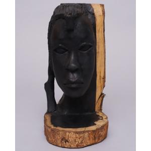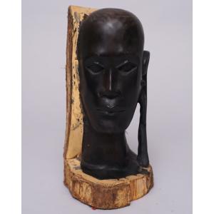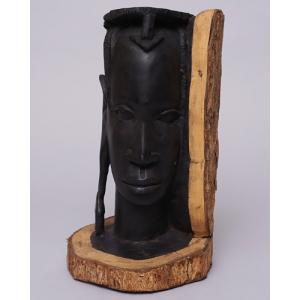 アフリカ タンザニア マコンデ 黒檀 彫刻 頭像 No.2 木彫り ヘッドスカルプチャー エボニー アフリカ雑貨