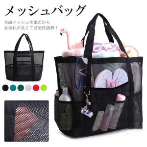 メッシュバッグ ビーチバッグ 大容量 軽量 海外旅行 収納 外出 温泉 バス ジム ビーチ プール 海 子ども 肩がけ 手提げ フィットネス スイミング 水泳 ヨガ アウ