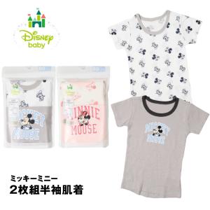ミッキー ミニー 半袖肌着 ベビー ディズニー 80 90 95 女の子 男の子 肌着 綿100% コットン 2枚組 ドナルド 丸首 ベビー 半袖