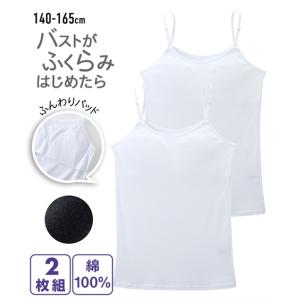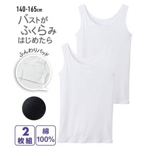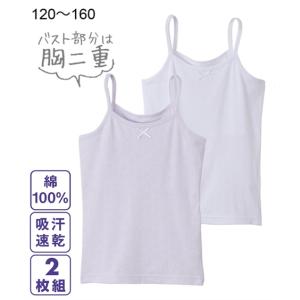 キッズ 綿100% ソフトカップ付 白無地 タンクトップ 2枚組 女の子 子供服 ジュニア服 身長140/150/160/165cm ニッセン nissen