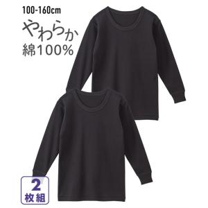 肌着 キッズ 綿100% 黒無地 長袖 インナー 2枚組 男の子 女の子 子供服 ジュニア服 身長100/110/120/130cm ニッセン nissen