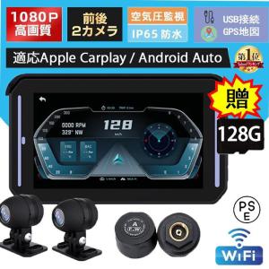 ドライブレコーダー バイク Carplay レコーダー バイクナビ カープレイ ドラレコ 前後カメラ 日本語取り扱い書 USB 衝撃検測 タイヤ空気圧センサー 防水
