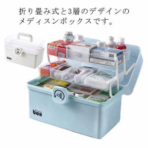 薬箱 メディスンボックス 3層 くすり箱 大容量 救急箱 薬入れ 仕切り 透明 くすり ケース 取っ手付き ファーストエイドボックス 応急ボックス 家