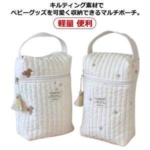 おむつポーチ マグポーチ キルティング オムツポーチ マルチポーチ かわいい くま 葉 花柄 刺繍 キルトポーチ 送料無料 赤ちゃん ベビー 綿 おむ