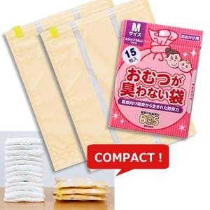 おむつ 圧縮袋 消臭袋 紙おむつ持ち歩きセット おむつが臭わない袋 (15枚入)+エチケット 圧縮パック(2枚)のセット 防臭素材 BOS 4点迄メール便OK(ra1a113)