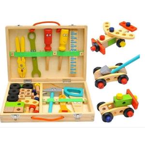 【大特価】木のおもちゃ 工具セット 大工さんセット 知育玩具 早期学習玩具 男子向け 組立て 収納トランクセット 作業道具 指先訓練 感覚教具 子供 プレゼント