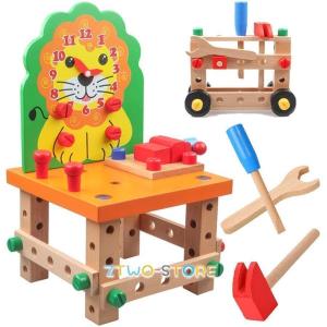 大工さんままごと 知恵玩具 木のおもちゃ 組み合わせ 大工さん セット ネジ ハンマー ねじ回し 工具おもちゃ ごっこ遊び DIY 組み立て 車 風車