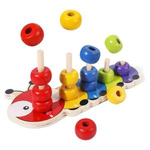 木製の建物のブの柱のビーズのおもちゃ、早期教育ビーズスタック