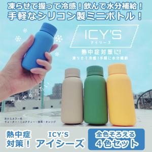 熱中症対策!アイシーズ全4色セット (容量100ml 超小型ミニボトル 水筒 片手で握れる シリコンボトル 小型 ミニサイズ 暑さ対策 携帯冷却 ドリンク 凍らせれる)