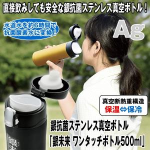 銀抗菌ステンレス真空ボトル「銀未来ワンタッチボトル500ml」 (真空二重構造,真空断熱,保冷,保温,水道水を浄化,安全,広口タイプ,直接飲み)