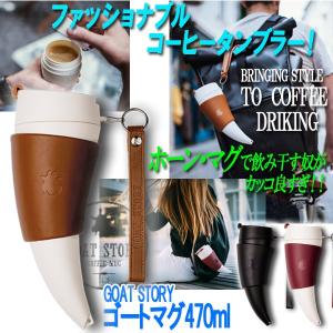 GOAT STORYゴートマグ470ml (持ち運びできる ホーン型マグ 水筒 本革 耐熱 保温 保冷 ストラップ コーヒー タンブラー 斜め掛け)