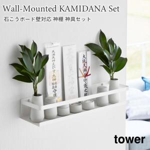 神棚 石こうボード壁対応 タワー 神具セット 山崎実業 tower ホワイト 3655 神棚 榊立て 瓶子 水玉 皿 神具 お札立て お神札 御神札 破魔矢 収納