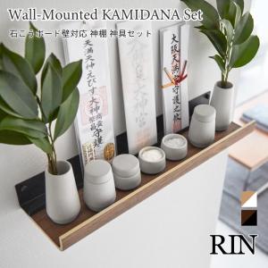 神棚 セット 石こうボード壁対応 神具セット 山崎実業 RIN ブラウン ナチュラル 3658 3659 yamazaki 榊立て 瓶子 水玉 皿 神具 陶器 お札立て お神札 破魔矢