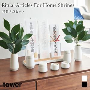神具 タワー 7点セット 陶器 ホワイト 山崎実業 tower 榊立て 瓶子 水玉 皿 8189 タワーシリーズ yamazaki