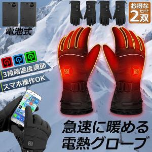 爆買 電熱グローブ バイク 発熱 防寒対策 電熱ヒートグローブ 2双セット スマホ操作 3段階調温 電池式 ヒーター手袋 防水 防風 即暖 ハンティ