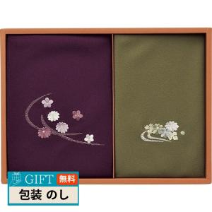草花の遊び 刺繍入り 二巾風呂敷 & 金封包み 紫 250-14B ギフト プレゼント 贈り物 贈答 包装 熨斗 のし 無料 【LOI】