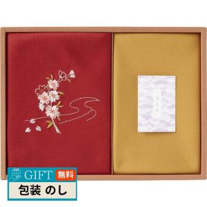 草花の遊び 刺繍入り 二巾風呂敷 & 金封包み 赤 250-14A ギフト プレゼント 贈り物 贈答 包装 熨斗 のし 無料 【LOI】