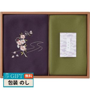 洛北 刺繍入り 二巾 風呂敷 & 金封包み 紫/利久 ギフト プレゼント 贈り物 贈答 包装 熨斗 のし 無料 【LOI】