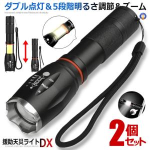 2個セット 懐中電灯 充電式 LED 強力 軍用 最強 防災 点滅 停電 超高輝度 ハンディライト ズーム 18650 バッテリー 単四電池 夜間 明るい ENTENLIGHT