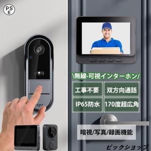 インターホン ワイヤレス ドアホン 付き モニター付き テレビドアホン 工事不要 双方向通話 録画 暗視ドアホン USB充電 チャイム 防犯 チャイム