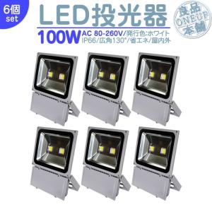 夜間作業 工事現場 等に LED投光器 LEDライト LED作業灯 屋外 100W 8500LM(1000W相当) ハイパワー 高出力 広角130度 省エネ LED投光機 LED 作業灯 【6個】