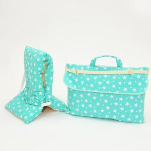 防災頭巾とカバー セット 星エメラルド 日本製 キルティング 背もたれ