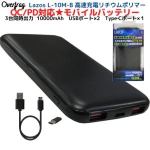 LAZOS モバイルバッテリー 10000mah 小型 軽量 薄型 コンパクト 大容量 5v 3a 18w pd qc pse L-10M 高速充電 typec 対応