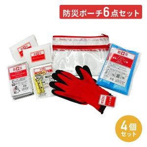 防災ポーチ 6点セット 4個セット 非常用持ち出し袋 防災用品 防災グッズ 携帯用トイレ 簡易トイレ 地震 防災バッグ グリーンオーナメント