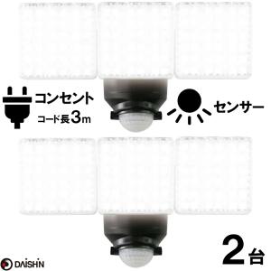 2個セット センサーライト コンセント式 屋外用 大進 DLA-17T200 防犯 ライト 人感 LED AC 100V 電源 外灯 防雨 外 軒下 防水規格 防雨型