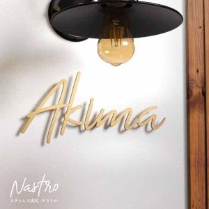 表札 おしゃれ 戸建て アイアン ステンレス 切り文字 二世帯 筆記体 浮き彫り 板彫刻 ゴールド (iron-np21/Nastro)