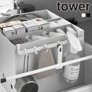 山崎実業 tower ファイルケース 取り付け 引っ掛け収納バー タワー 収納 フック シンク下 洗面台下 吊り下げ 収納ハンガー ごみ袋ホルダー