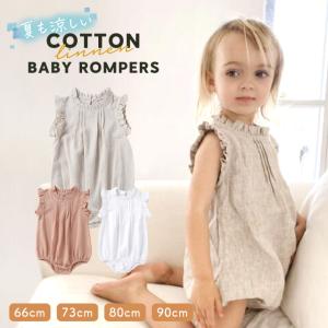 ロンパース ノースリーブ ベビー キッズ コットン リネン 女の子 男の子 フリル シンプル 無地 かわいい おしゃれ 60 70 80 90 新生児 赤ちゃん 綿
