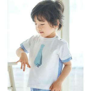 BeBe / べべ ネクタイプリントブロード切替半袖Tシャツ(80~90cm)