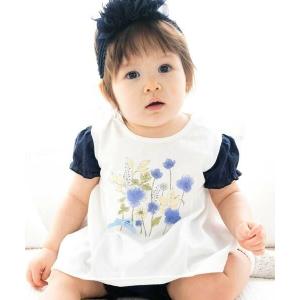 fillot de bebe reduction / フィヨ デュ ベベ ルダクティオン 天竺花柄プリントパフスリーブTシャツ(70~90cm)