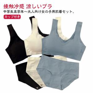 ブラジャー ショーツ 上下セット キッズ 子供 無地 パッド付き ブラジャー カップ付き ノンワイヤー 冷感 ブラ インナー 接触冷感 涼しいブラ 夏