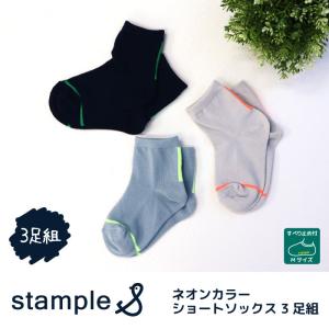 stample スタンプル 73140 ネオンカラー ショートソックス 3足組 滑り止め 靴下 キッズ 子供 わかいい おしゃれ ライン リブ 2025 春 夏