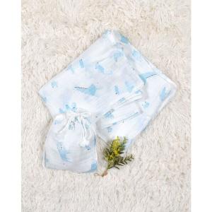 fillot de bebe reduction / フィヨ デュ ベベ ルダクティオン 巾着 付き 総柄 プリント ガーゼ スワドル おくるみ