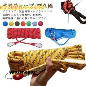 クライミング ロープ ザイル 太さ 10mm 長さ 20m 登山 カラビナ フックボルダリング 消防