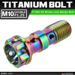 64チタンボルト バンジョーボルト M10 P1.25 ダブル ブレーキライン 1本ホース用 焼きチタンカラー ライトカラー 1個 JA014