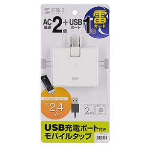 TAP-B104UN サンワサプライ USB充電ポート付きモバイルタップ 2P・2個口+USB1ポート